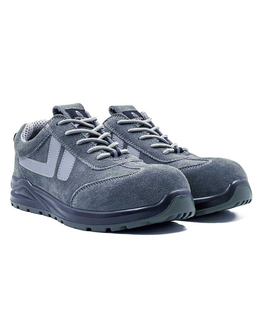 Рабочие кроссовки с композитным подноском с ударной нагрузкой до 200 Дж. Лёгкие и комфортные при носке кроссовки изготовлены из натуральной замши с водозащитными свойствами. Подошва ног надежно защищена кевларовой стелькой, выдерживающей нагрузку до 1100 Н. Подкладка из дышащей трехслойной 3D AirMesh ткани серого цвета. Подошва ПУ/ТПУ изготовлена литьевым методом, устойчива к воздействию кислотно-щелочных веществ (до 20%), масло-бензольных соединений и нефтепродуктов. Рабочая температура эксплуатации кроссовок от -35°С до +85°С. Глухой клапан предотвращает попадание нетоксичной пыли, влаги и грязи внутрь. Вкладная стелька изготовлена из антисептического, воздухопроницаемого материала Memory Foam («Пена памяти»), повторяющего форму стопы, дублированного антибактериальной 3D AirMesh тканью