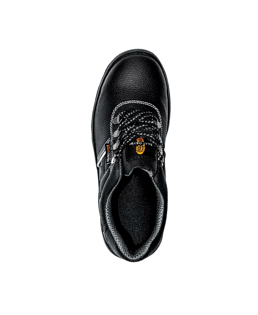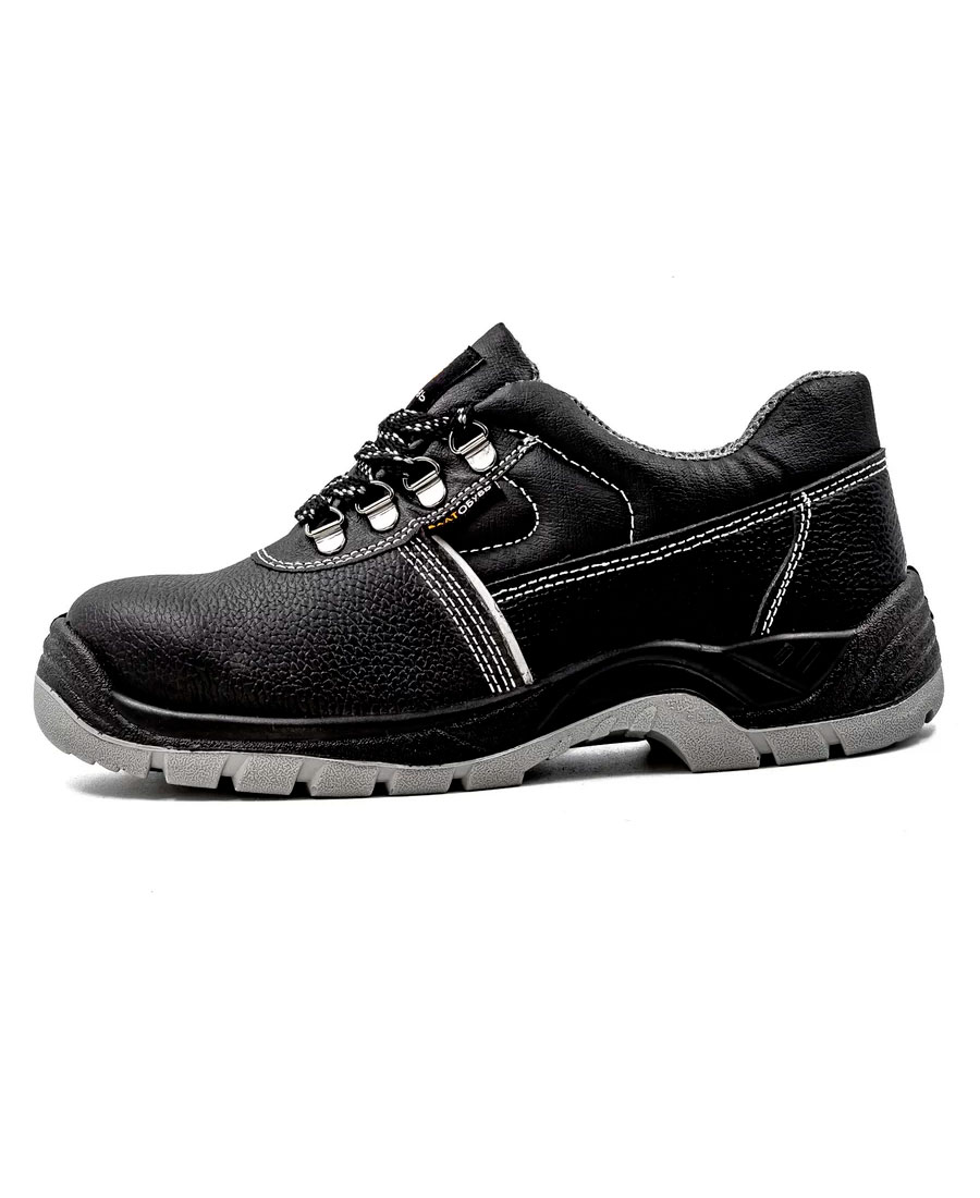 Защитные полуботинки на двухслойной ПУ/ПУ (полиуретановой) подошве. Обувь изготовлена из натуральной прорезиненной юфтевой кожи высокоустойчивой к воздействию агрессивных внешних факторов. Носок защищен металлическим подноском с ударной нагрузкой до 200 Дж. Подкладка ботинок из дышащей трехслойной 3D AirMesh ткани. Подошва изготовлена литьевым методом, устойчива к воздействию кислотно-щелочных веществ (до 20%), масло-бензольных соединений и нефтепродуктов. Рабочая температура эксплуатации ботинок от -35°С до +85°С. Дополнительный комфорт для ног и защиту от ударных нагрузок обеспечивают амортизатор в пяточной части ботинка и мягкий кант, защищающий голеностоп. Глухой клапан предотвращает попадание нетоксичной пыли, влаги и грязи внутрь. Анатомическая стелька из ЭВА обеспечивает комфорт носки и снижает нагрузку на суставы ног