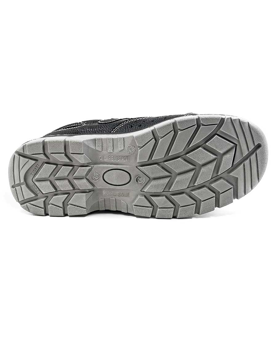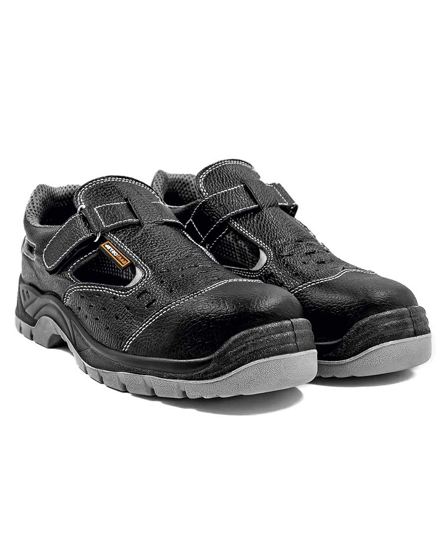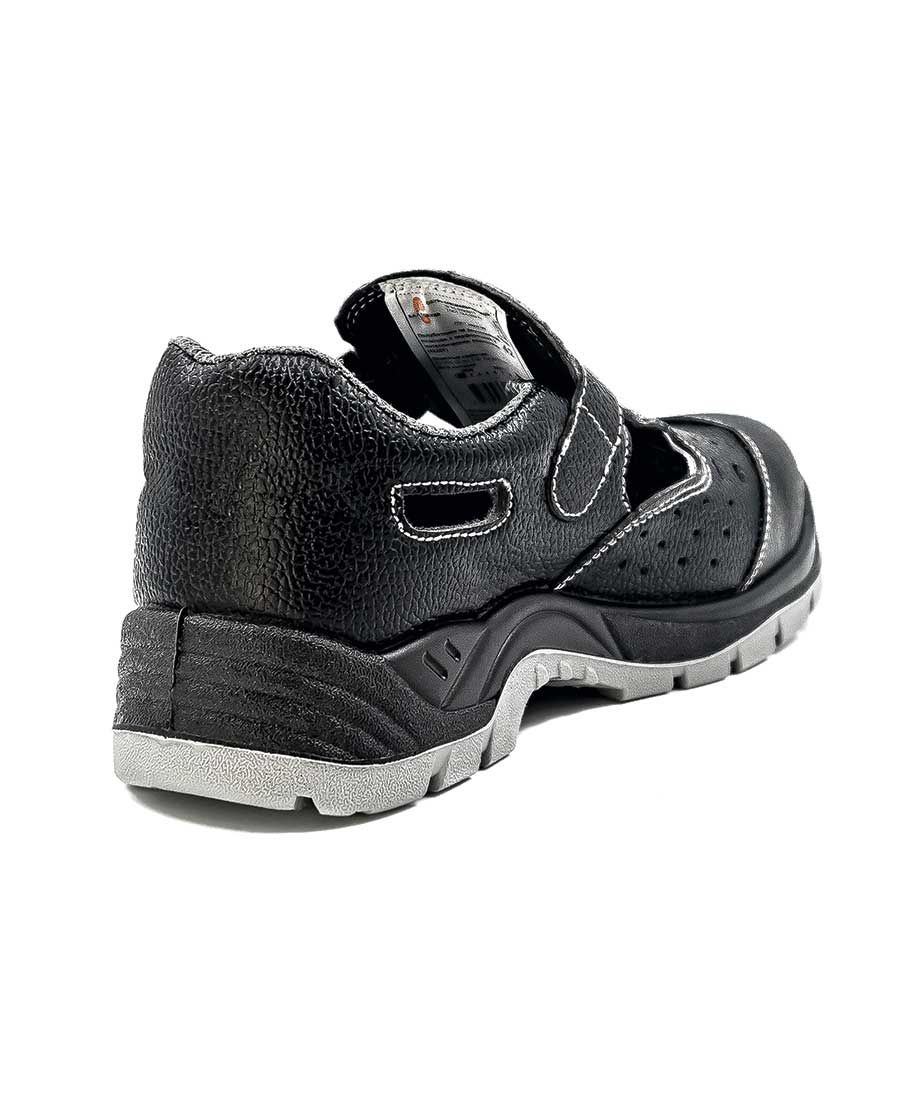 Защитные сандалии на двухслойной ПУ/ПУ (полиуретановой) подошве. Обувь изготовлена из натуральной прорезиненной юфтевой кожи высокоустойчивой к воздействию агрессивных внешних факторов. Носок защищен металлическим подноском с ударной нагрузкой до 200 Дж. Подкладка ботинок из дышащей трехслойной 3D AirMesh ткани. Подошва изготовлена литьевым методом, устойчива к воздействию кислотно-щелочных веществ (до 20%), масло-бензольных соединений и нефтепродуктов. Рабочая температура эксплуатации ботинок от -35°С до +85°С. Дополнительный комфорт для ног и защиту от ударных нагрузок обеспечивают амортизатор в пяточной части ботинка и мягкий кант, защищающий голеностоп. Глухой клапан предотвращает попадание нетоксичной пыли, влаги и грязи внутрь. Анатомическая стелька из ЭВА обеспечивает комфорт носки и снижает нагрузку на суставы ног