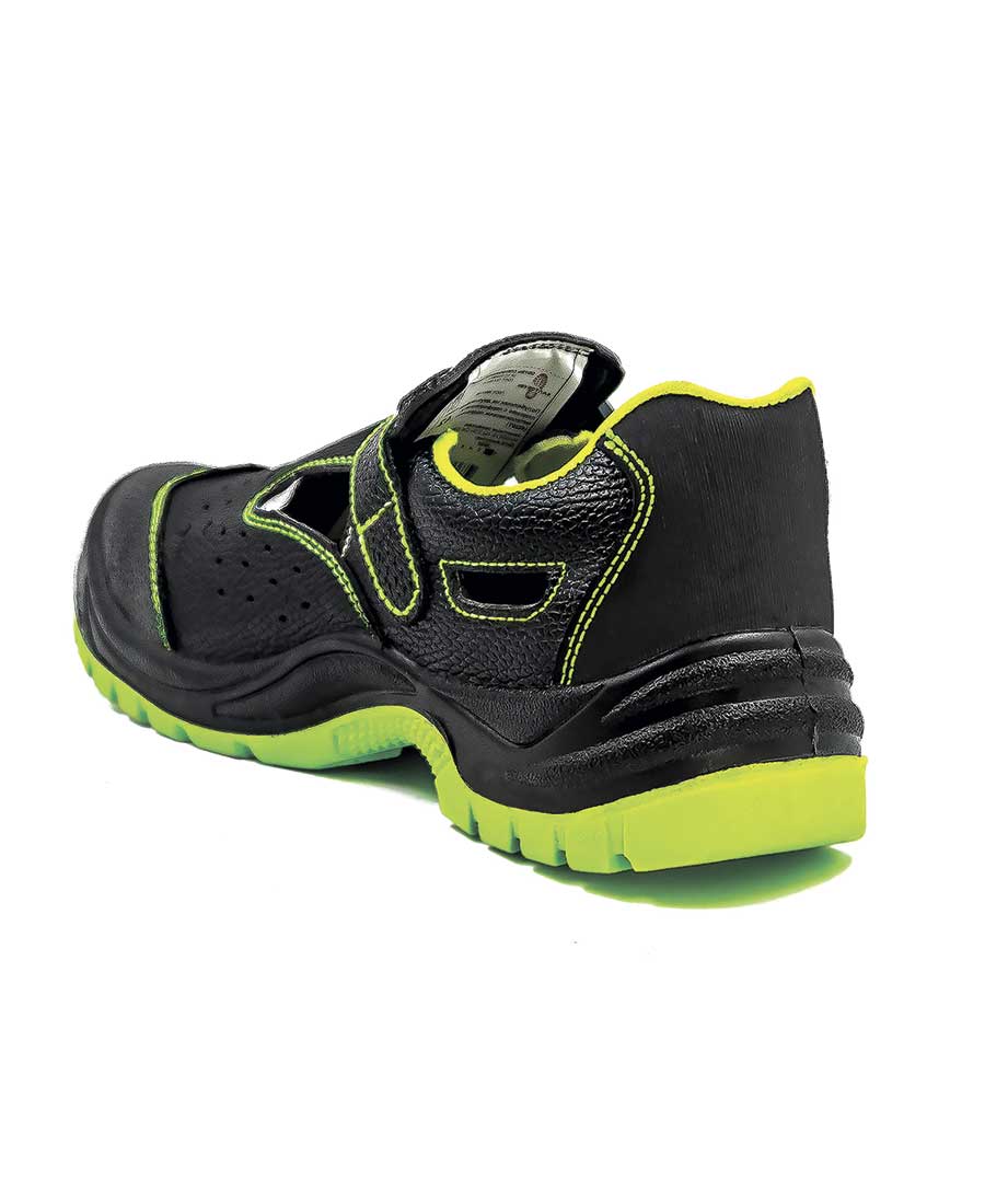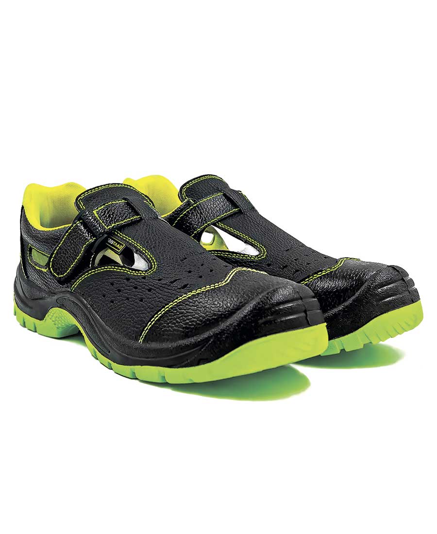 Рабочие сандалии с двухслойной ПУ/ПУ (полиуретановой) подошвой изготовлены из натуральной юфтевой кожи, обладающей высокой степенью устойчивости к агрессивным воздействиям. Они оснащены перфорацией для обеспечения воздухообмена. Защита носка обеспечивается металлическим подноском, способным выдерживать ударную нагрузку до 200 Дж. Подкладка сандалий выполнена из дышащей трехслойной 3D AirMesh ткани. Подошва, изготовленная методом литья, обладает устойчивостью к кислотно-щелочным веществам (до 20%), масло-бензольным соединениям и нефтепродуктам. Диапазон рабочих температур составляет от -35°С до +85°С. Дополнительный комфорт и защита от ударных нагрузок обеспечиваются амортизатором в пяточной части, усиленным протектором и дополнительной защитой носковой части. Анатомическая стелька из ЭВА обеспечивает комфорт при носке и снижает нагрузку на суставы ног.