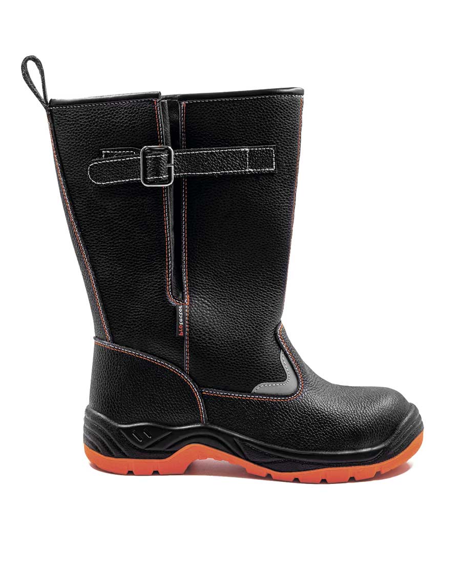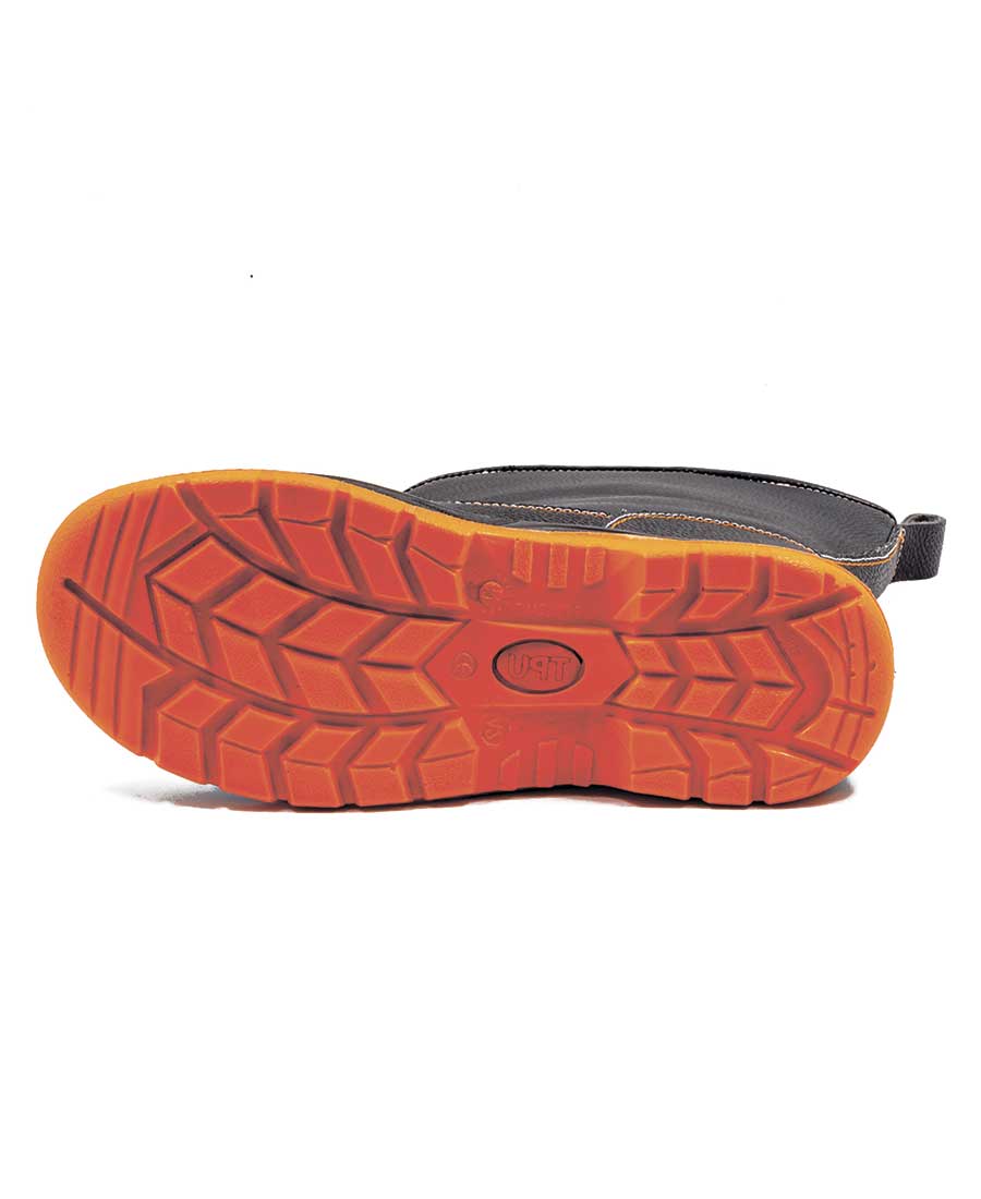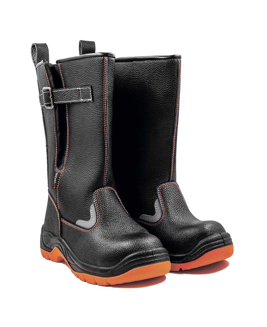 Защитные сапоги на двухслойной ПУ/ПУ (полиуретановой) подошве изготовлены из натуральной юфтевой кожи устойчивой к воздействию агрессивных внешних факторов. Носок защищен металлическим подноском с ударной нагрузкой до 200 Дж. Подошва изготовлена литьевым методом, устойчива к воздействию кислотно-щелочных веществ (до 20%), масло-бензольных соединений и нефтепродуктов. Рабочая температура эксплуатации ботинок от -35°С до +85°С. Амортизатор в пяточной части сапога обеспечивает дополнительный комфорт для ног. Анатомическая стелька из ЭВА обеспечивает комфорт носки и снижает нагрузку на стопу